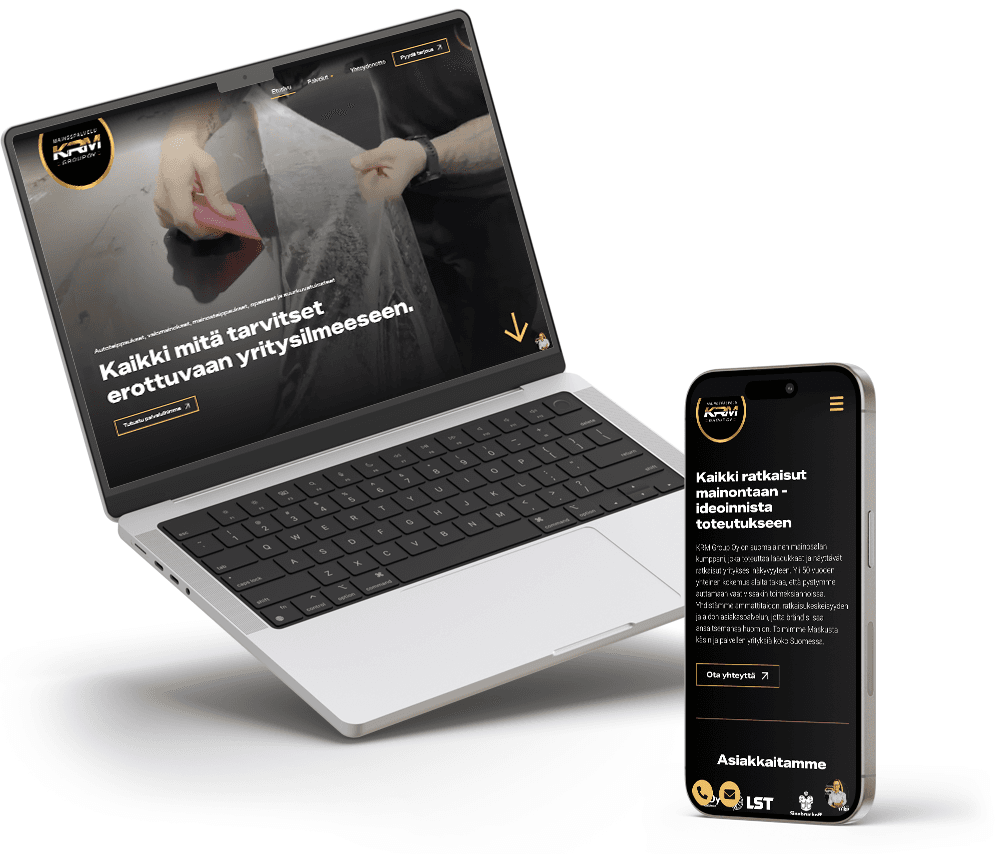 Visuaalisia mainosratkaisuja tarjoavan KRM Groupin verkkosivut uudistettiin moderniksi, selkeäksi ja näyttäväksi kokonaisuudeksi. Rakenteet ja sisällöt järjesteltiin niin, että kävijän on helppo löytää etsimänsä – ja sivusto toimii yhtä sujuvasti niin mobiilissa kuin koneella.